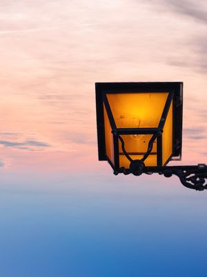 Una pieza que celebra el diseño clásico y la calidez en medio de la inmensidad atmosférica. Esta obra aísla un elemento icónico del mobiliario urbano del Viejo San Juan, elevándolo a un plano artístico donde su luz cálida contrasta armoniosamente con la paleta fría y etérea del cielo al crepúsculo. La composición minimalista elimina distracciones, obligando al espectador a enfocarse en la silueta de hierro forjado y el brillo ámbar que ha guiado a generaciones a través de la ciudad amurallada.