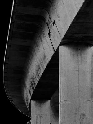 Esta obra es una oda a la ingeniería y a la estética del brutalismo contemporáneo. La captura transforma una estructura de infraestructura masiva en una composición artística donde la fuerza y la forma convergen. Al aislar las columnas de soporte contra un vacío absoluto, la imagen enfatiza la escala sobrehumana y la solidez inquebrantable del concreto, convirtiendo lo funcional en algo puramente escultural.