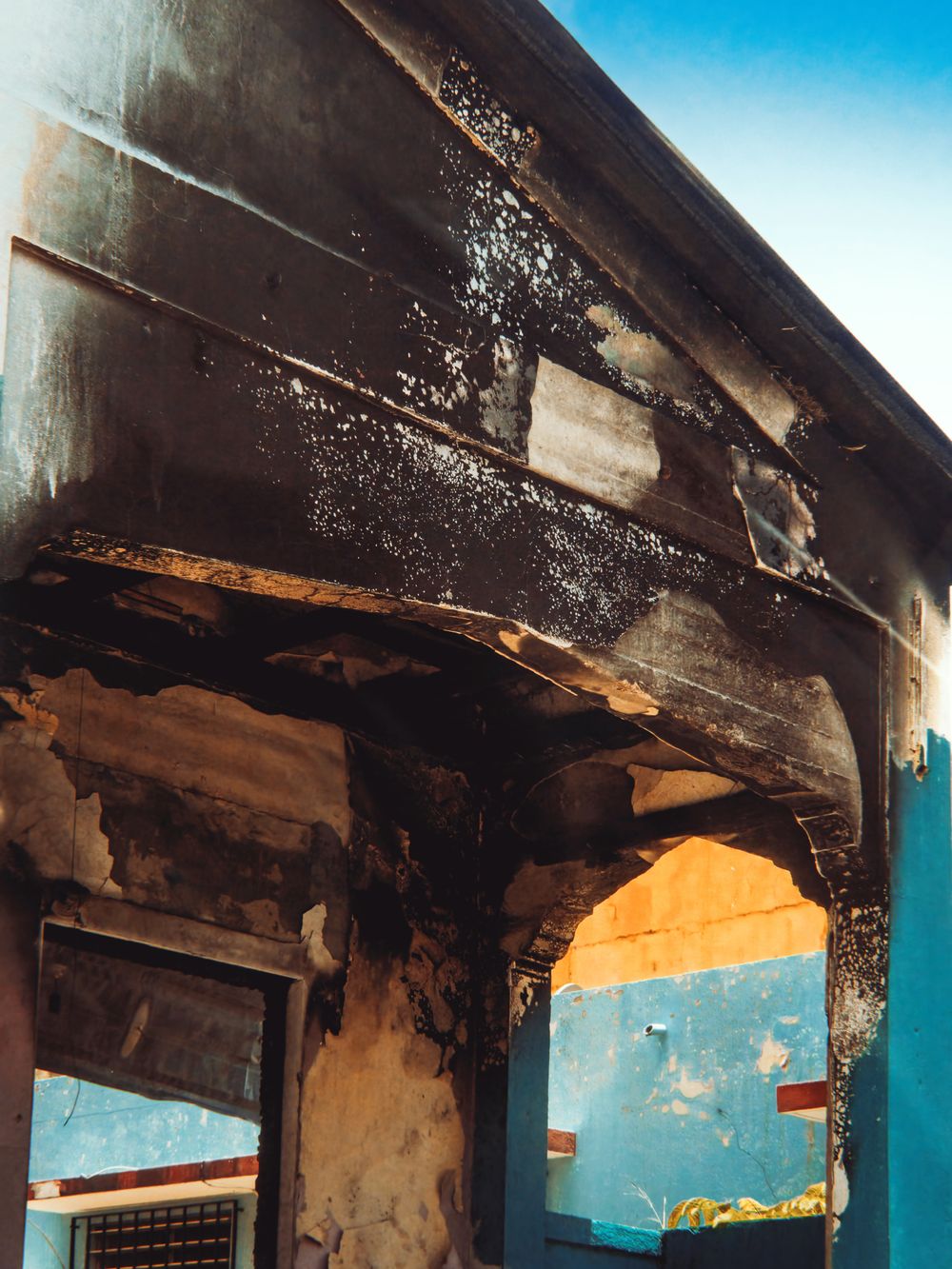 A work that finds beauty in the heart of chaos. This piece documents the degradation of an urban structure after a fire, where the disorder of debris and charred paint becomes a choreography of textures and organic shapes. The composition uses the contrast between the soot's darkness and the sky's pure blue to suggest that, even in ruin, there is a visual harmony that deserves to be preserved.